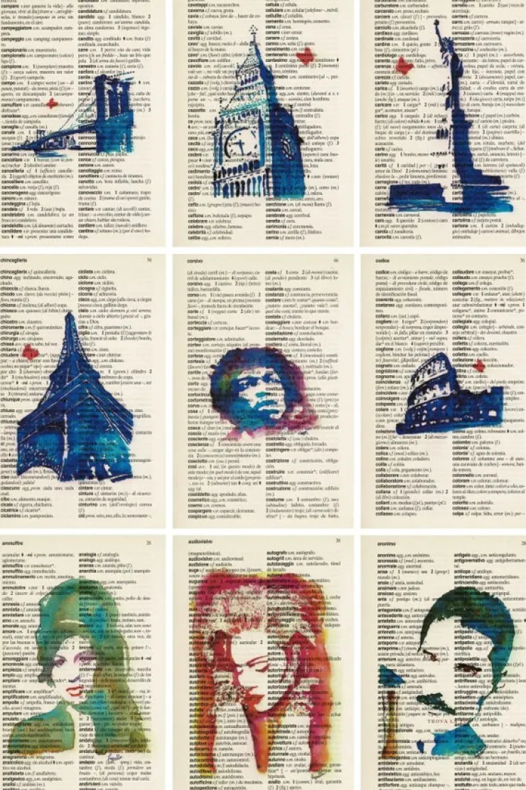 9 Utskrift av min målning på sida ur italienskt-spanish orginallexikon. Lexikonsidan/konstverket mäter 4,8×7,6 tum eller 12×19 cm. Sidorna har med tiden vackert gulnat, samt har veck och färgskiftningar. Varje utskrift är unik och är på en enskild lexikonsida. Varje konstverk är signerat av konstnären. Gratis frakt. Du handlar direkt från den italienska konstnären Pasquale Lagatta. För ytterligare information kontakta konstnären personligen. Levereras i vadderat kuvert.