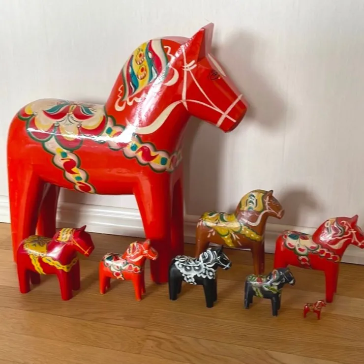Tradera Åtta handmålade Dalahästar i olika storlekar| Dalarheste