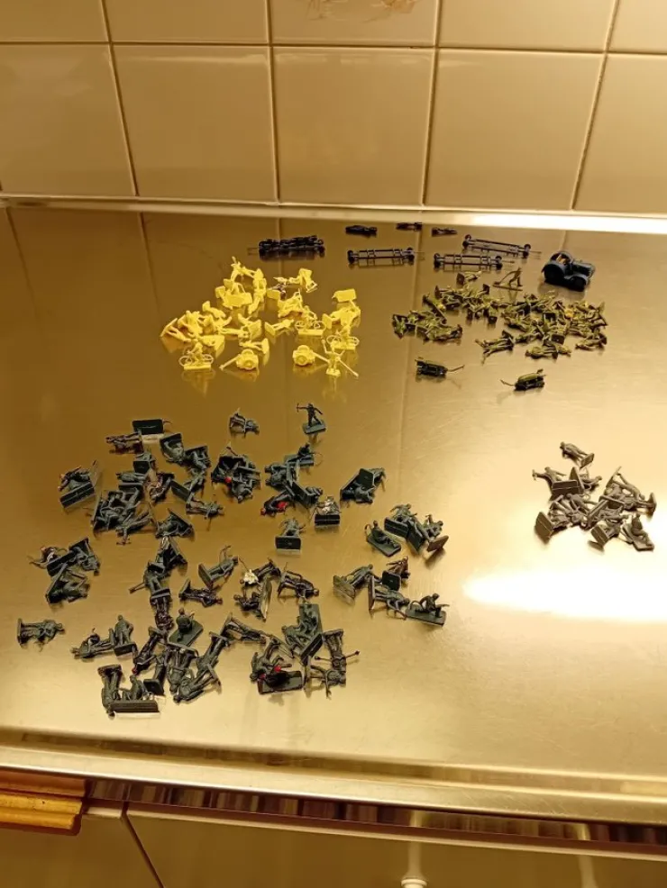 Säljer ett stort parti med plastleksaker, mestadels soldater, fordon och tillbehör. Perfekt för lek eller samling. Skapa din egen flygbas. C:a 150 figurer plus fordon. Tyskar. Britter och Amerikaner.