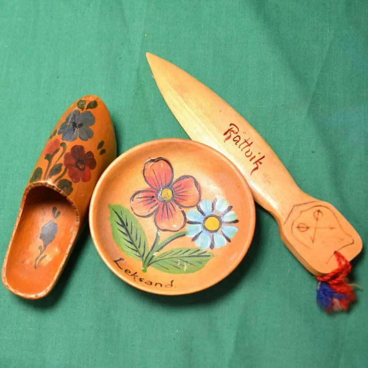Äldre hantverk från Dalarna 3st trä-saker (Den längsta 155mm) från Rättvik och Leksand, i bra skick.