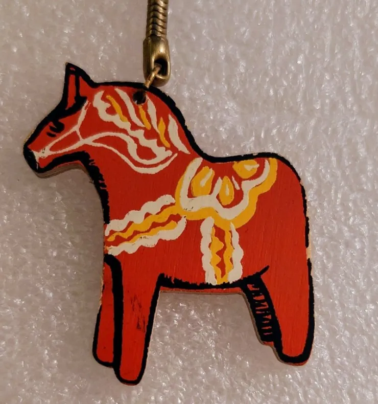 Nyckelring formad som en Dalahäst. Traditionell svensk design. 70/80-talet.