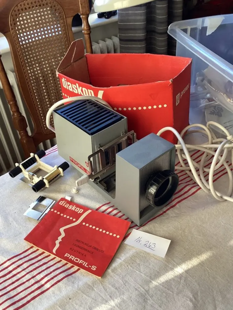 En ældre diasprojektor som du kan se på billederne, lyset virker, det er alt hvad jeg kan tjekke.