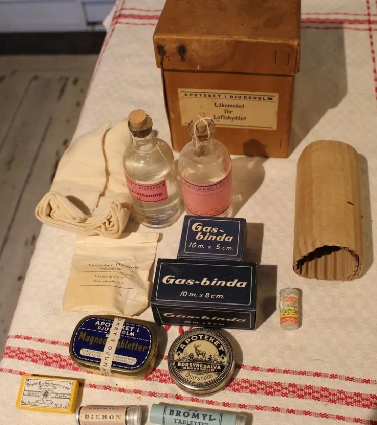 Tradera APOTEKET DJURSHOLM, LÄKEDMEDEL FÖR LUFTSKYDDET. OVANLIGT OBJEKT.> Medicinske Gadgets