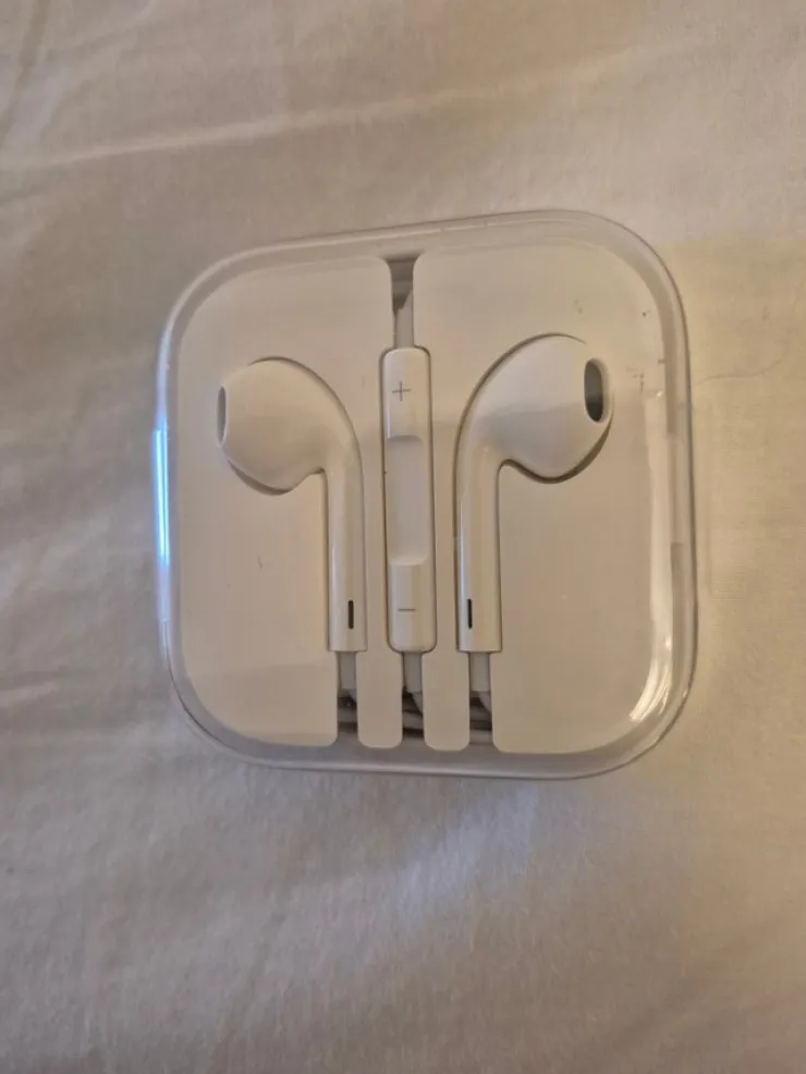 Gamla hörlurar med ledning från Apple. Aldrig använd.