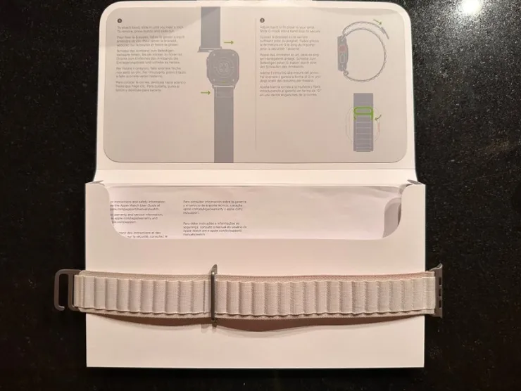 Apple Watch armband i färgen Starlight, modell Alpine Loop.