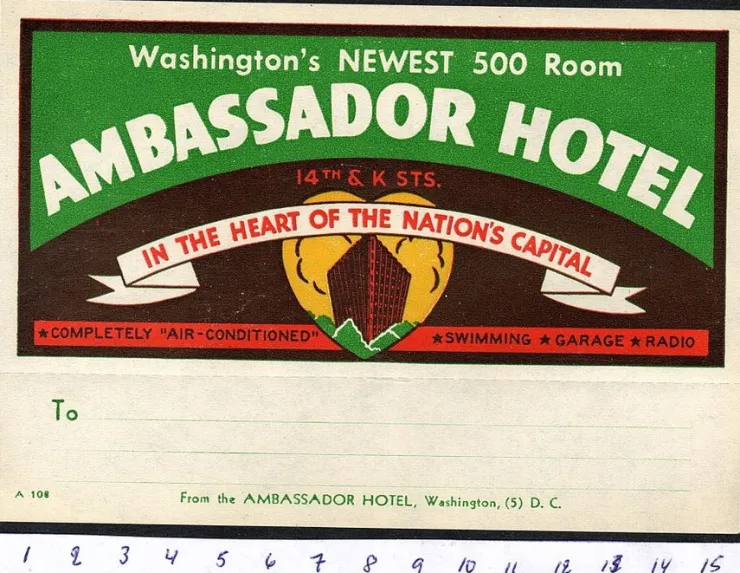 Tradera Bagageetikett Ambassador hotel, Washington USA hotell> Kuriositeter