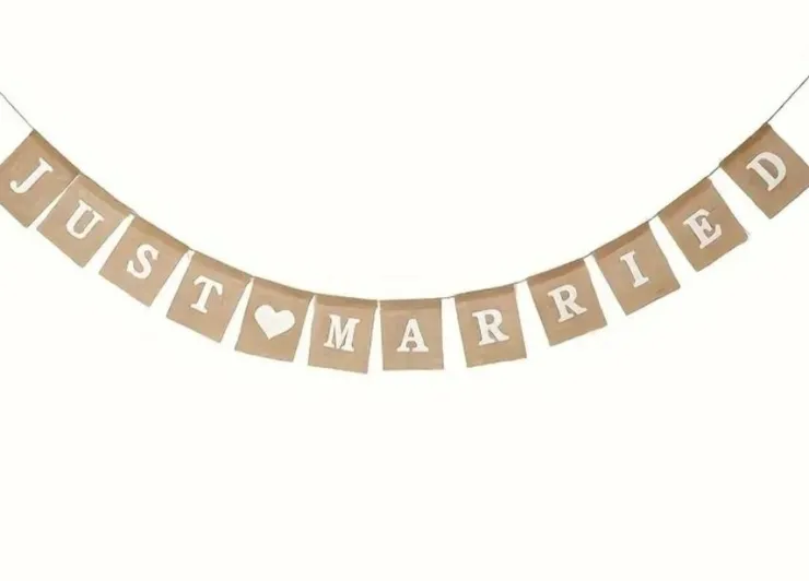 Tradera Banderoll Just Married| Bryllups-borddækning & Dekorationer