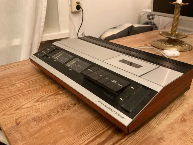 Välfungerande kassettdäck med klassiska B/O designen från 1978. Chassisidor av Palisander.