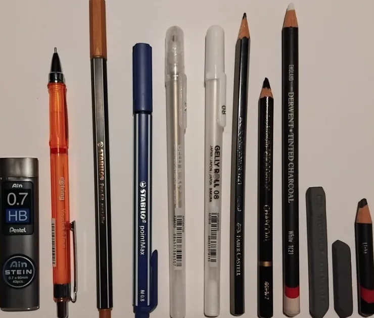 Tradera Blandat konstnärsmaterial (blyerts, fiber, filt, gel, kol)| Kunstnerartikler