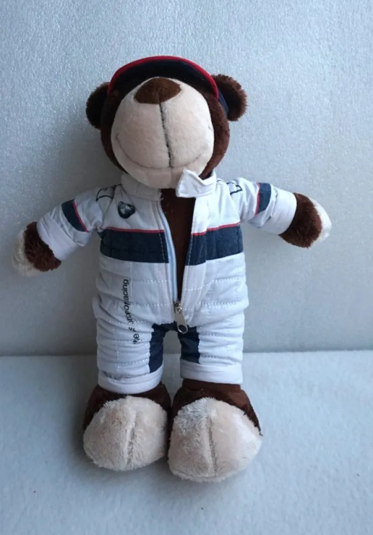 Söt nallebjörn klädd i BMW Sauber F1 Team outfit. Perfekt för samlare eller Formel 1-entusiaster!