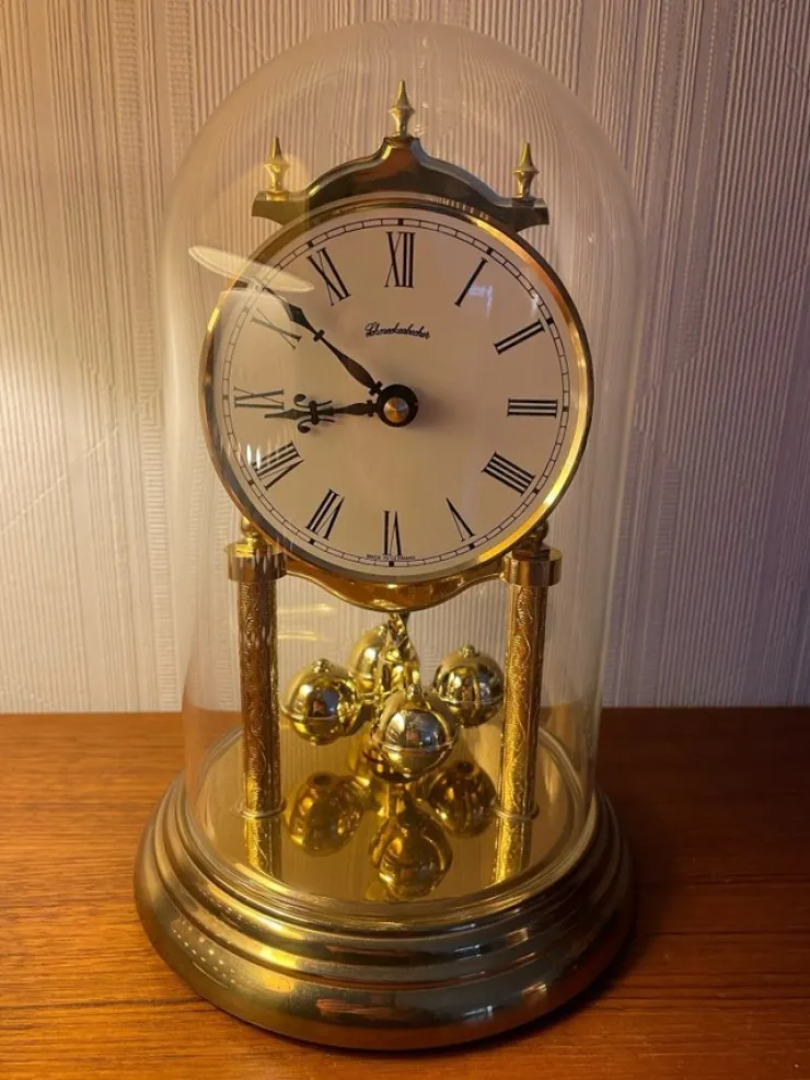 Klockan fungerar fint, är i bra skick och glaskupan är hel.