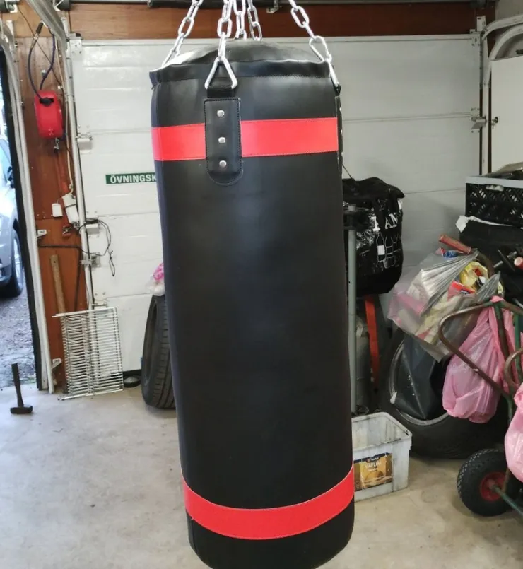 Säljer en boxningssäck med handskar.