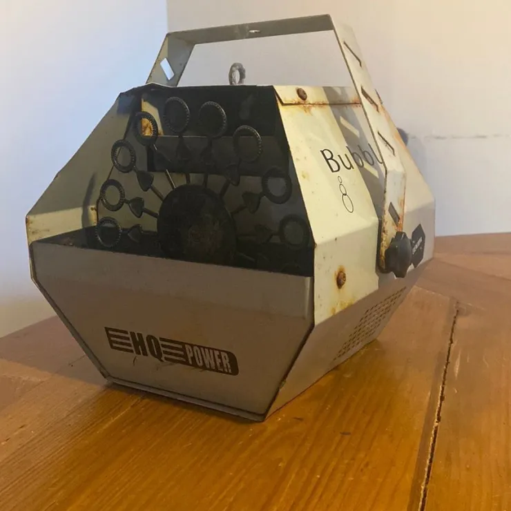 Säljer en Bubbelmaskin från Velleman, modell VDL25BM. 25W. Ordernummer: 1001266. Enkel att använda. Perfekt för fester och evenemang. Maskinen startar. Dock snurrar inte själva bubbel ”propellern” jag vet inte om man behöver göra något eller koppla något för att den ska snurra. Fläcken fungerar som den skall och den startar. Se mer info på bilder. Samfraktar gärna