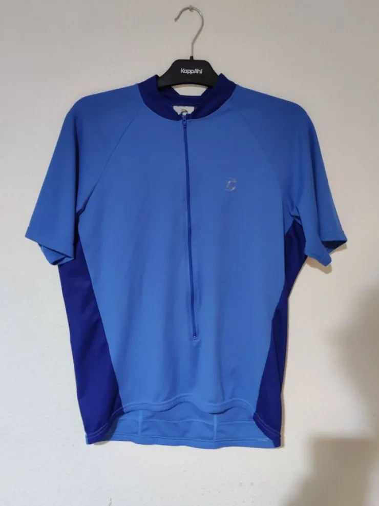 Snygg och bekväm cykelschorts i blått och mörkblått. Tröjan har en full dragkedja framtill och tre fickor baktill. Perfekt för cykelturer eller vardagsbruk.
