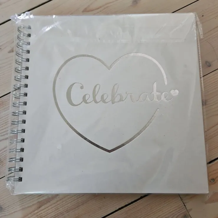 En ny vackr gästbok med ett silverhjärta på framsidan. Perfekt för bröllopet eller festen. Eller för att skriva ner tankar och idéer inför firandet.