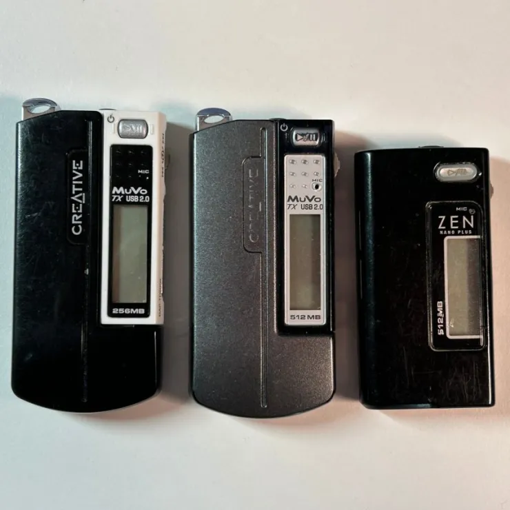 Kosmetiskt skick enligt bilder. Batteriluckor saknas på svart MuVo samt ZEN.