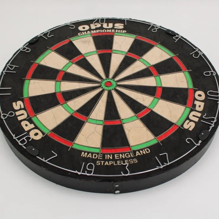 Säljer en klassisk Opus Championship darttavla, tillverkad i England. Modellen är “Stapleless”, vilket ger bättre hållbarhet och förbättrad precision vid spel. Darttavlan är välanvänd men i fullt fungerande skick. Perfekt för både hobbyspelare och den erfarna dartentusiasten.