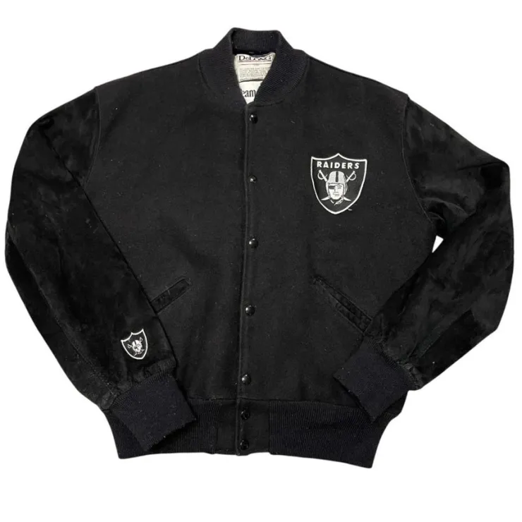 Beautiful late 80s / early 90s Raiders Varsity jacket, size LARGE. Jacket is in excellent preowned condition as presented in pictures; no holes or damage other than general wear. Thick jacket with insulation liner, buttons have no scrapes or damage to paint, all buttons snap easily/without issue or fastening. An amazing piece perfect for anyone belonging to Raider’s Nation!