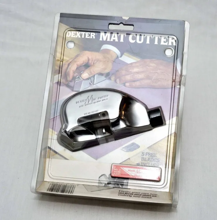 Oanvänd Dexter Mat Cutter i originalförpackning. Inkluderar 5 extrablad. Perfekt för scrapbooking, hobbyprojekt eller konstnärligt arbete. Tillverkad av Russell Harrington Cutlery, Inc.