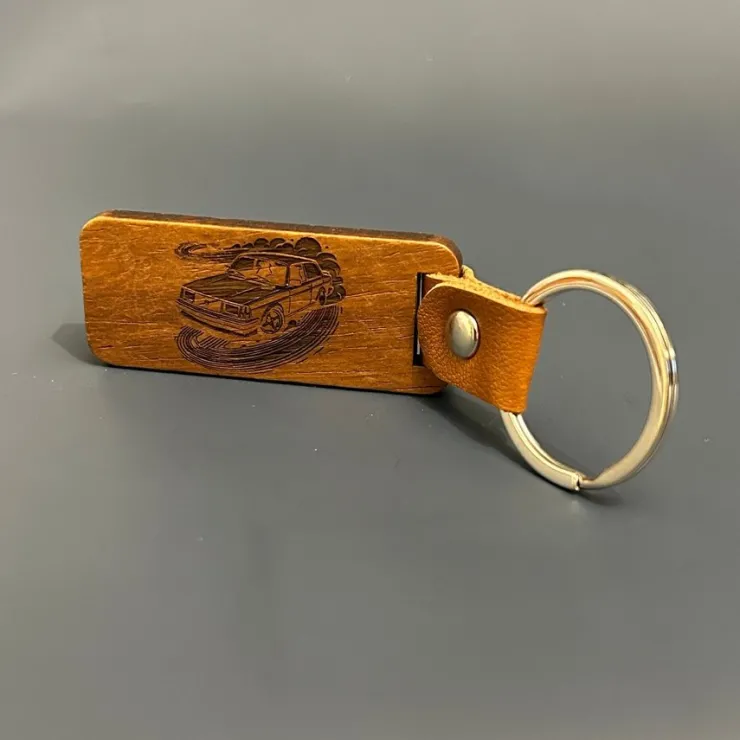 Leder du efter en personlig og stilfuld accessory? Denne nøglering med gravering kombinerer naturligt træ og elegant kunstlæder til et tidløst design, der passer til alle lejligheder.