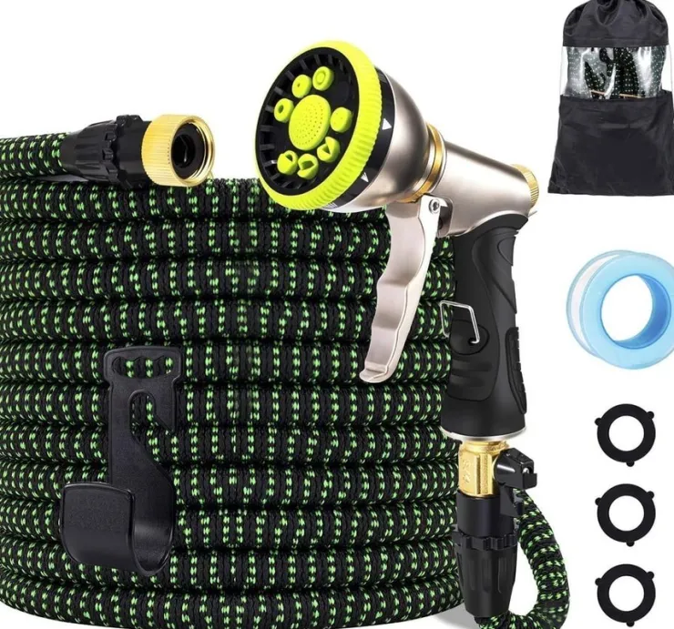 Slangen är lätt att använda och förvara, och den är perfekt för att vattna din trädgård, tvätta din bil eller rengöra ditt hus.