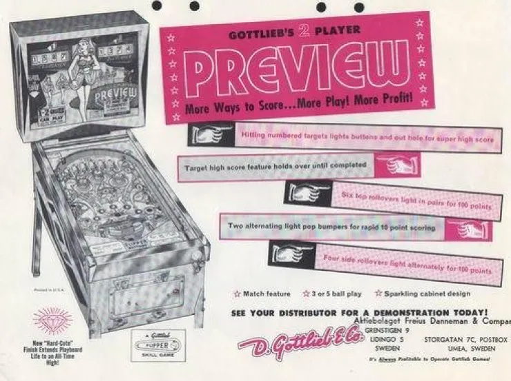 Tradera Flyer flipperspel Gottlieb Preview| Spillemaskiner