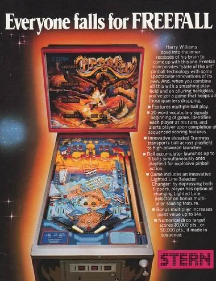 Tradera Flyer flipperspel Stern Electronics Freefall| Spillemaskiner