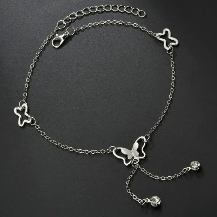 Tradera Fotlänk Vristlänk i silver med fjärilar och säkerhets lås> Ankelkæder