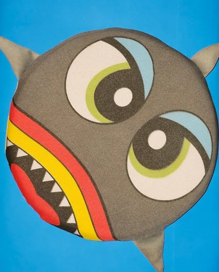 Snygg Frisbee Mjuk. 2-i-1. Mycket skön! Måttet: 19,5 cm x 2,5 cm utan vingar. Nyskick. Praktisk. Väger väldigt lite. Enkelt att ta med sig på resor eller på utflykter. Kan vid behov användas som stoldyna, sittunderlag eller kudde.