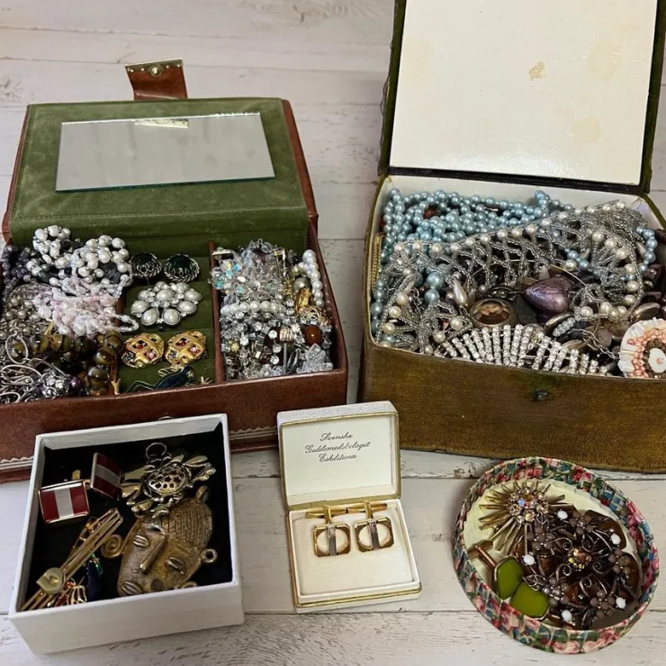 Inte genomgått – Innehåller smycken. Både hela och defekta. Lite allt möjligt.