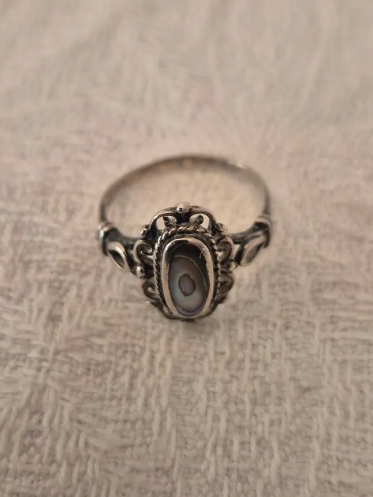 Tradera Gammal Ring, silver med pärlemor.> Ringe