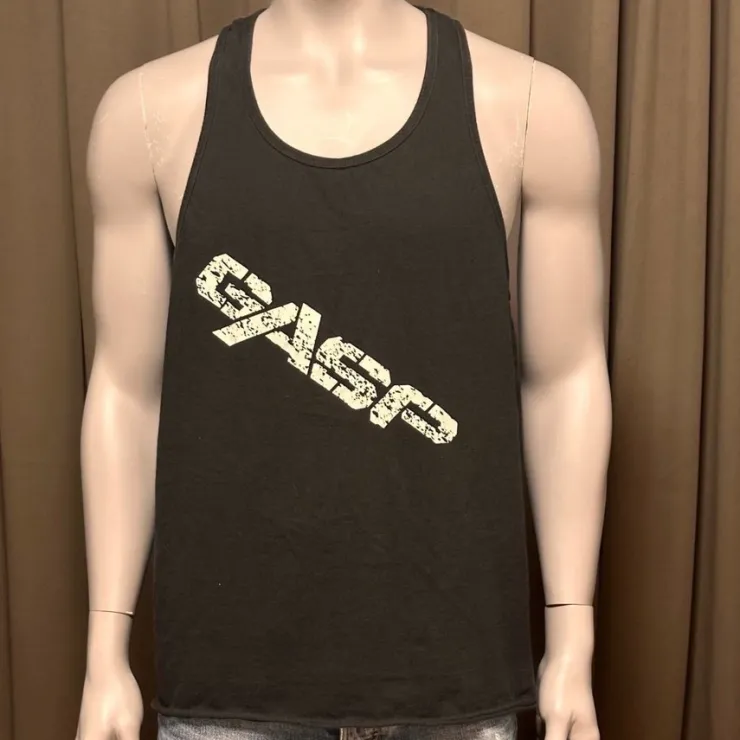 Svart träningslinne med GASP-logotypen på framsidan och en liten GASP-logotyp på baksidan. Tanktoppen har en racerback-design.