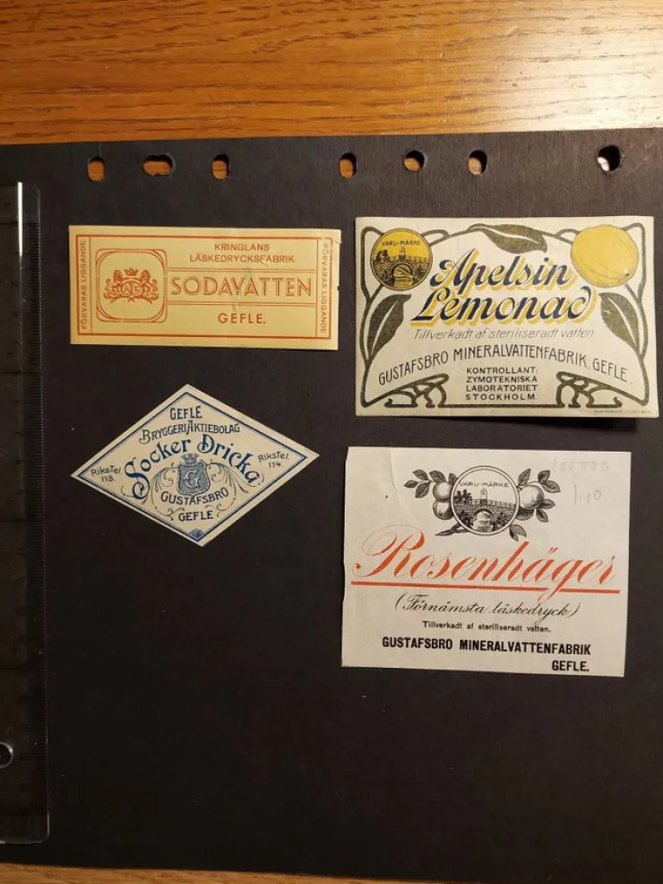 Gävle, Gefle, Kringlan, Gustafsbro. Soda, apelsin, socker, Rosenhäger. Etiketter