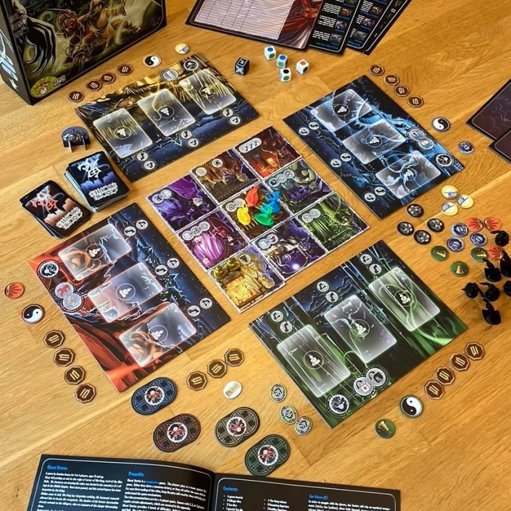 Samarbetsspel där 1-4 spelare ska fördriva spöken från en by. Ålder 12+, speltid en timme, inte alltför komplicarat. Regler på engelska, tyska och franska. 7.3 i betyg på boardgamegeek.