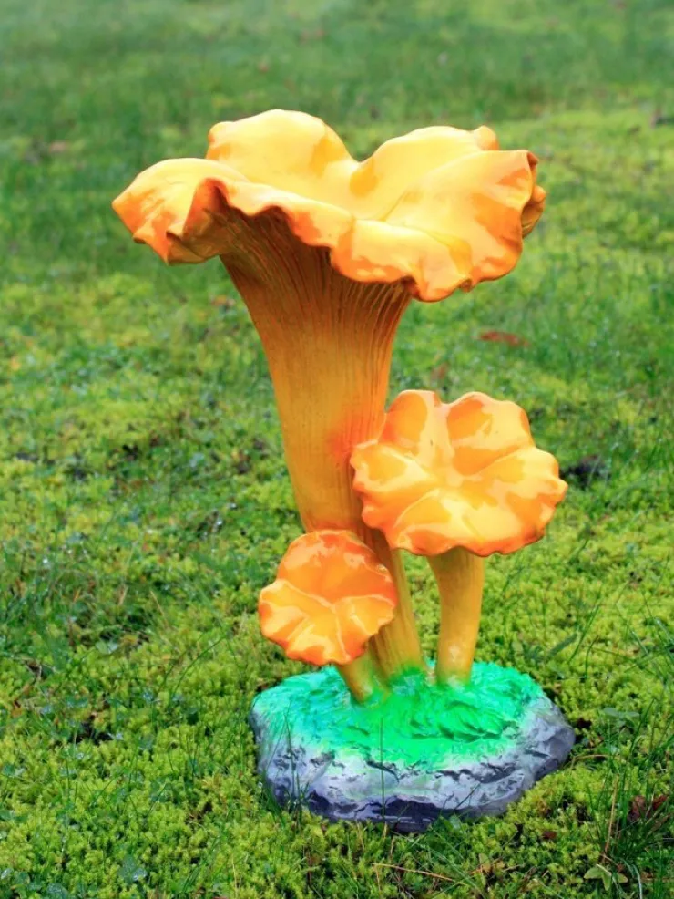 men vår kantarell kommer inte gömma sig från dig, istället kommer den att bli ett fint tillägg/prydnad i din trädgård. En stor figur med vackra ljusa färger gör den till en vacker dekoration i trädgården eller huset.