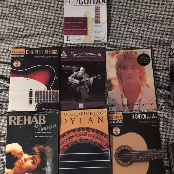 Här är en fantastisk samling av noter och tabulaturböcker för gitarrspelare på alla nivåer! Perfekt för dig som vill utvecklas inom olika gitarrstilar, från flamenco och fingerpicking till country, jazz och rock.