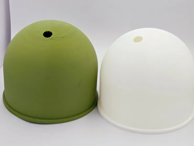 Två stycken glasiglos, en grön och en vit. Som i verkligheten, en för färgat glas och en för klart glas.