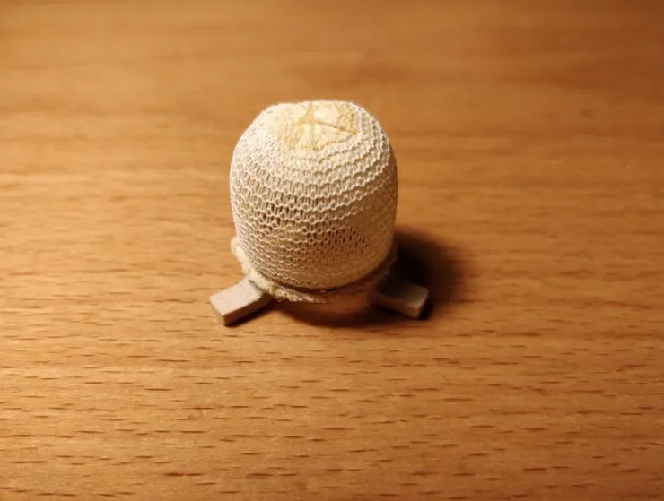 Nätets diameter cirka 27 mm, höjd inklusive fötter cirka 27 mm.