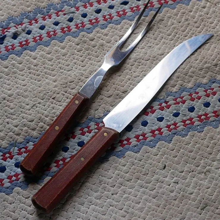 Grillbestick med träskaft , KN Rostfritt stål , Kniv och gaffel