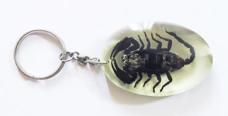 Häftig skorpion (Heterometrus sp.) inbäddad i klar resin med nyckelring