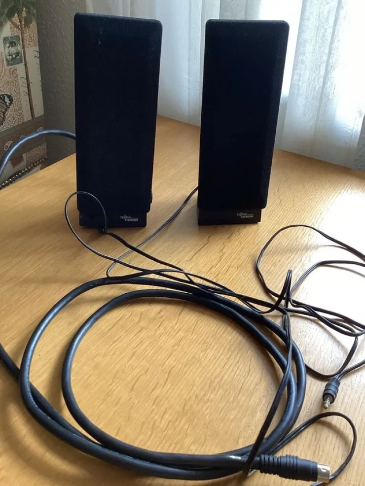 Högtalare Fujitsu computers siemens, höjd 22 cm bredd 8 cm, vikt knappt 1 kg (ej funktionstestad)