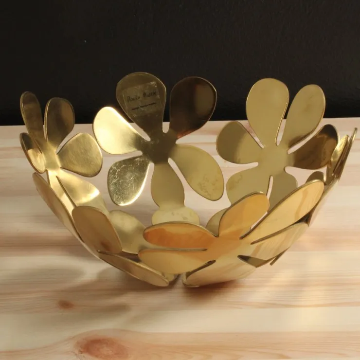Fin guldfärgad skål från IKEA, designad av Monika Mulder. Finns lite bruksmärken. Tejprest undertill.