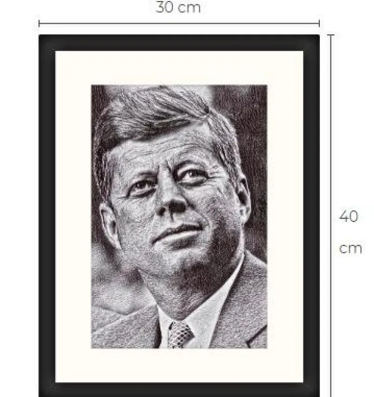 JFK, konsttavla, 1 av 10 gjorda. Storlek med ram: cirka 30 cm x 40 cm.