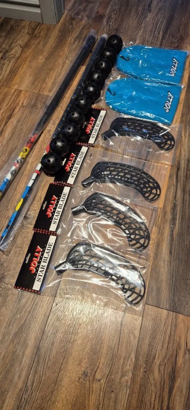 Säljer ett innebandypaket från Jolly. Paketet innehåller två klubbor,Väger endast 190g.