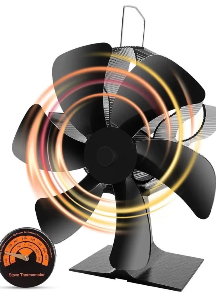 Inget batteri eller el krävs ugnsfläkt: Den termiska vedugnens fläkt genererar energi genom att omvandla värmen som genereras av ugnen till elektrisk energi och elgenereringsenheten omvandlar värmeenergin till kinetisk energi för att driva motorn, och sedan vrids vingarna.