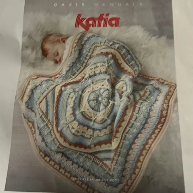 Katia Basic Merino garn i flera färger. Mängd garn räcker till att virka en filt enligt medföljande virkinstruktioner Oasis Mandala.