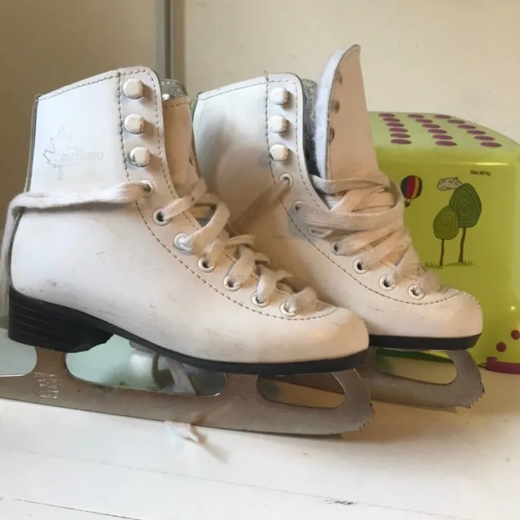 Vita konståknings skridskor i storlek 30. Fint använd skick