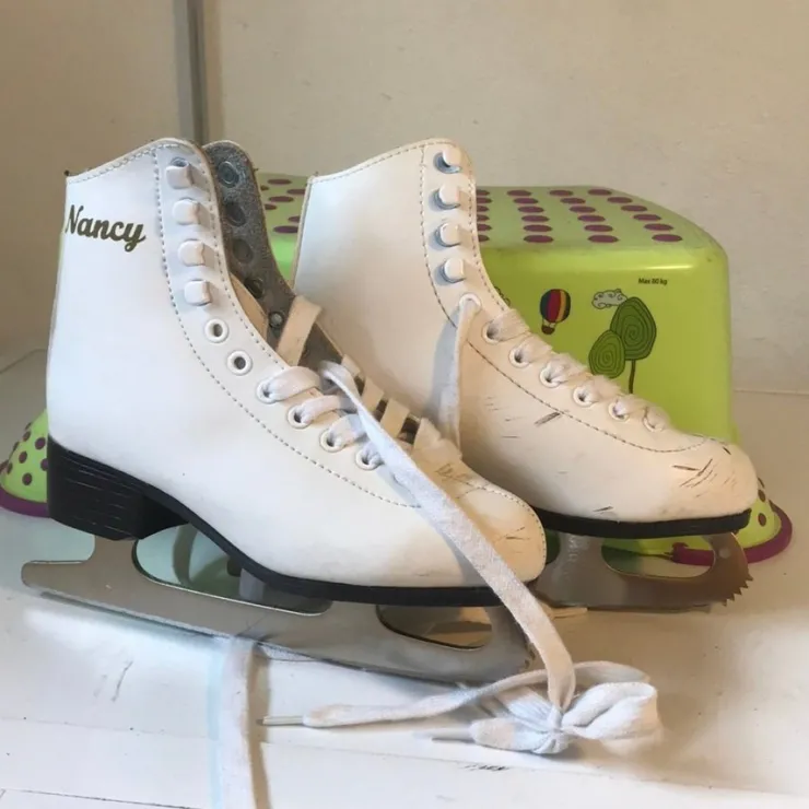 Vita konståknings skridskor i storlek 31. Fint använd skick