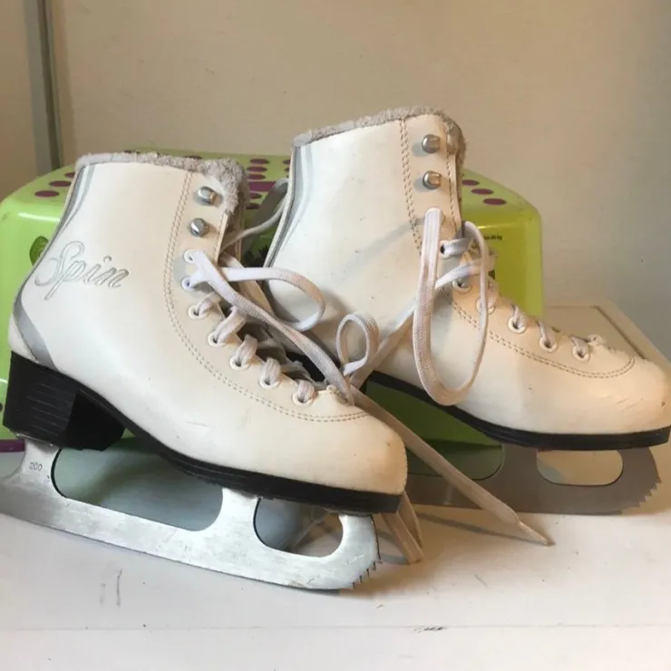 Vita konståknings skridskor i storlek 33. Fint använd skick