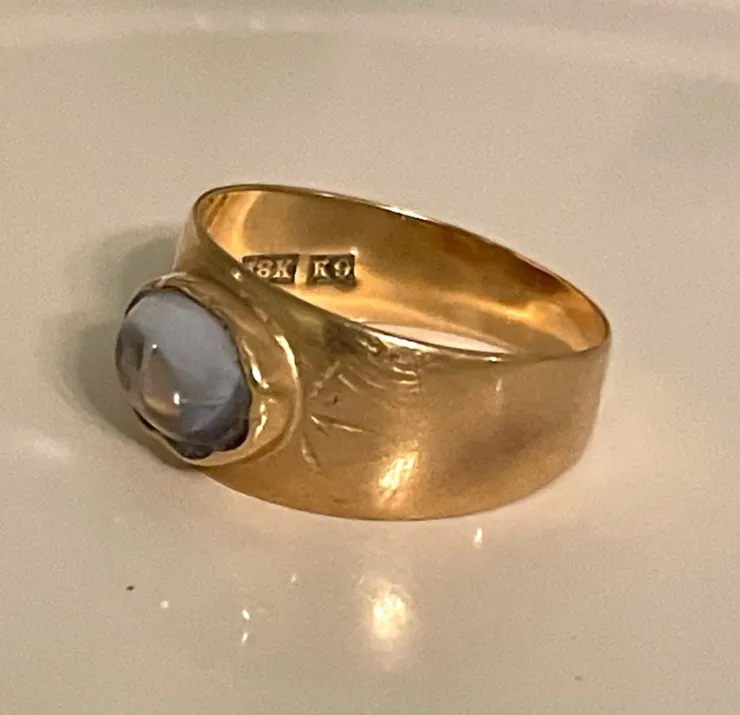 Tradera Kraftig ring i guld 18 karat. Månsten.> Ringe
